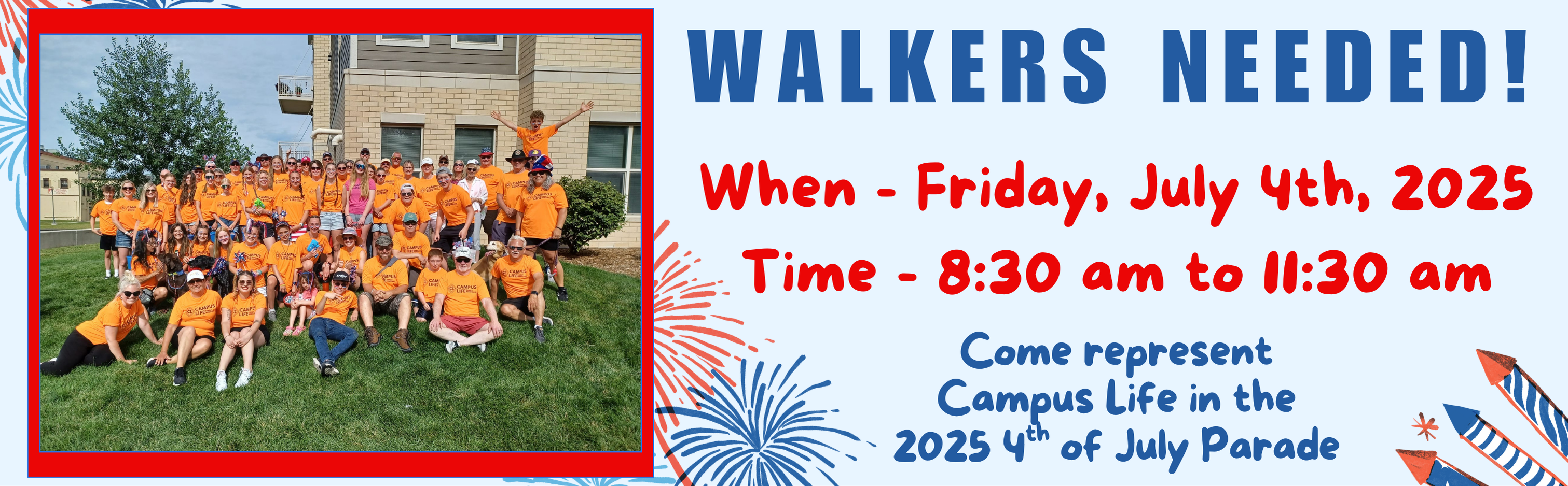 Come and represent Campus Life! Once again, we will be marching in the Sheboygan 4th of July Parade! We ask that any children under 14 years old who want to walk bring a parent along with them.